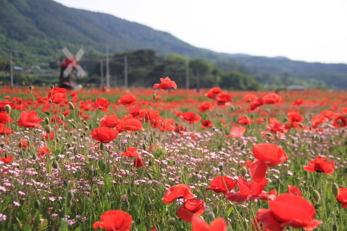 축제장에는 1억 송이 이상의 꽃양귀비가 붉은 물결을 이루며, 수레국화, 안개초, 금영화 등 다양한 봄꽃들이 함께 어우러져 장관을 이룹니다. 특히, 마약 성분이 없는 개양귀비 품종이 사용되어 관상용으로 안전하게 감상할 수 있습니다.