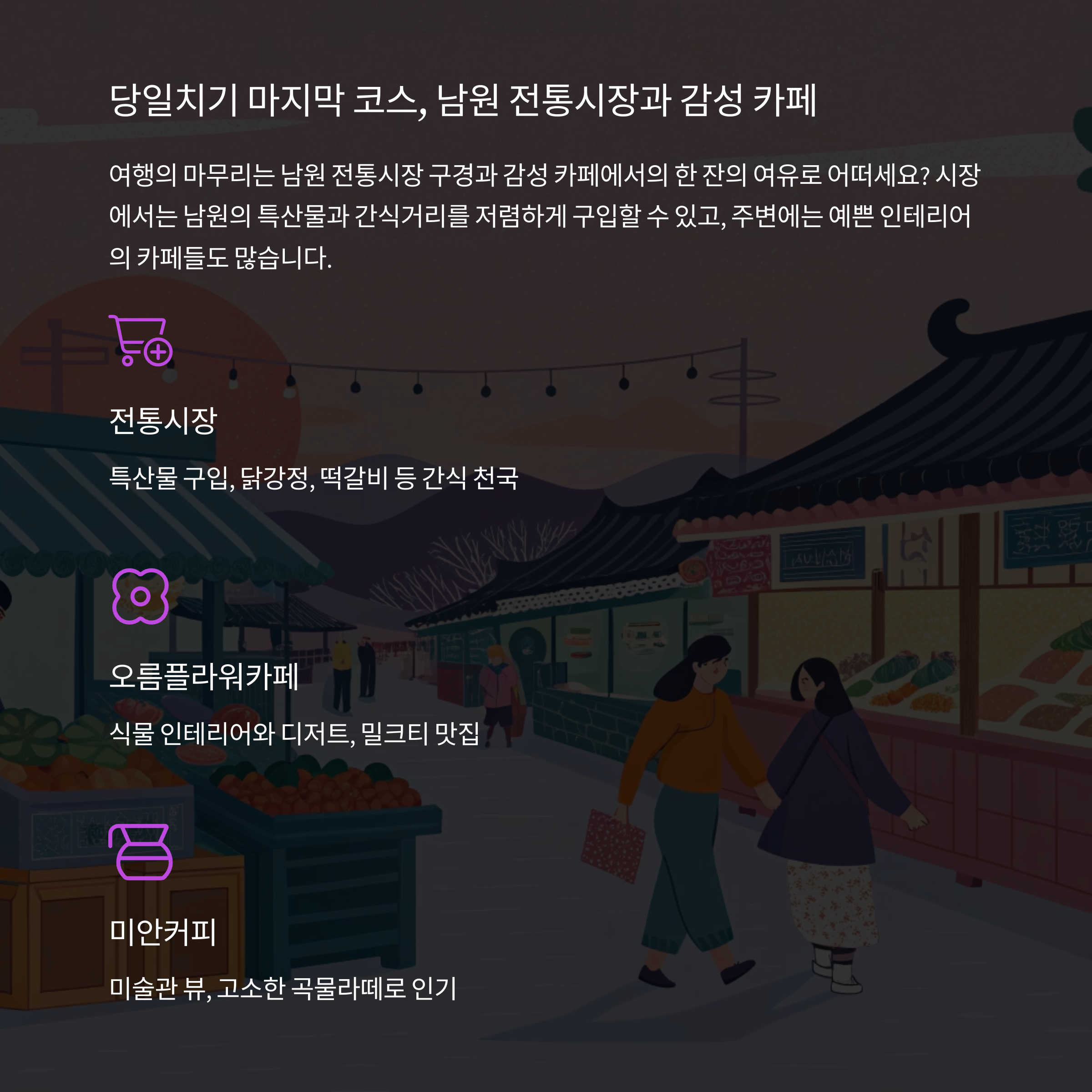 여행의 마무리는 남원 전통시장 구경과 감성 카페에서의 한 잔의 여유로 어떠세요?