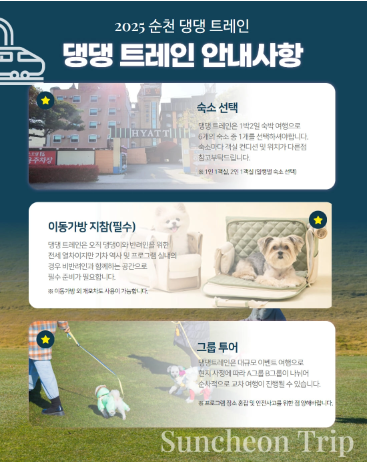 수도권과 충청권 출발을 기준으로 순천까지 운행되며, 1박 2일 동안 반려견 동반 여행이 가능한 코스로 기획되었어요.