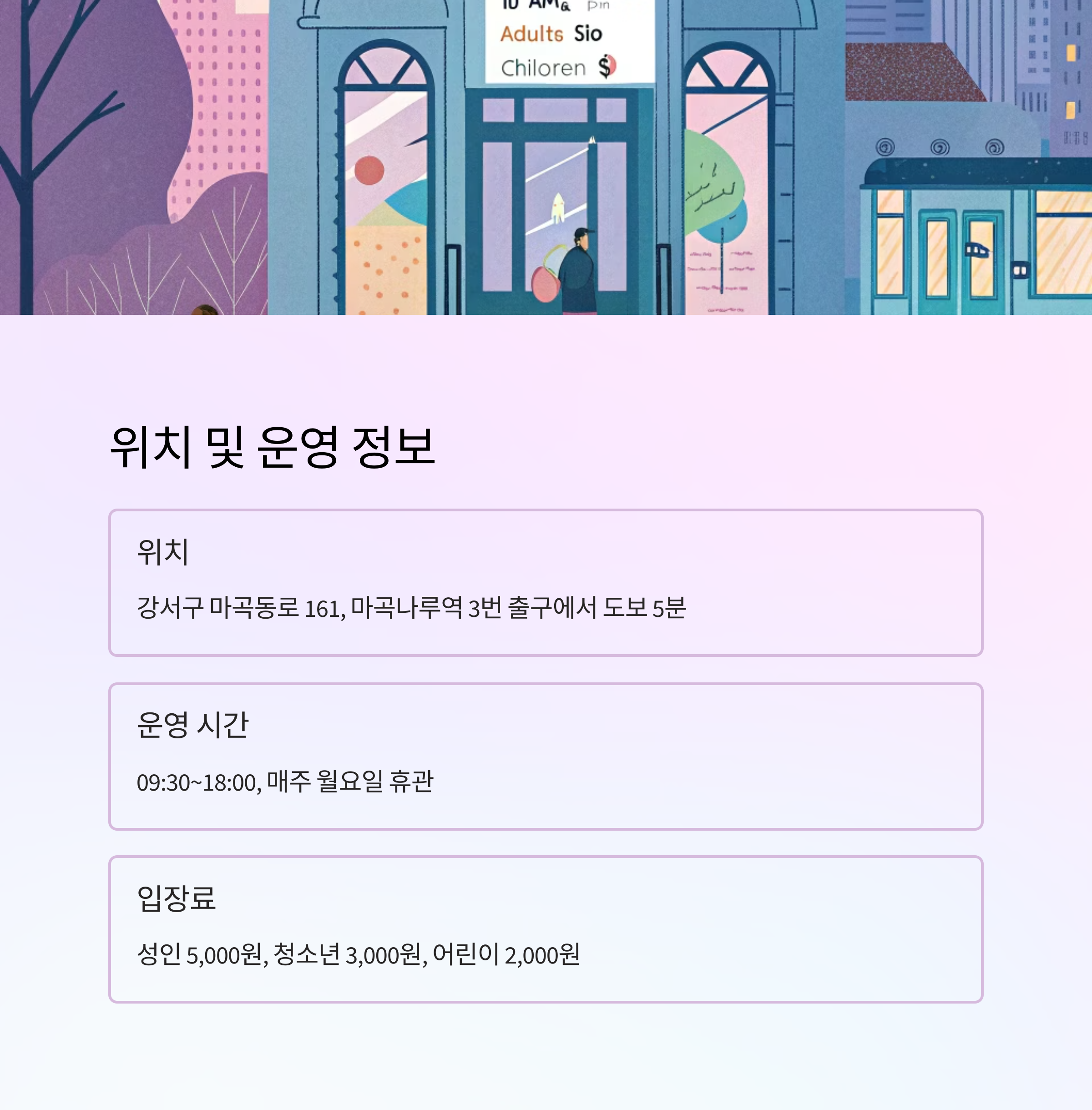 매주 월요일은 정기 휴관일로 운영되니 방문 전 반드시 체크하세요.