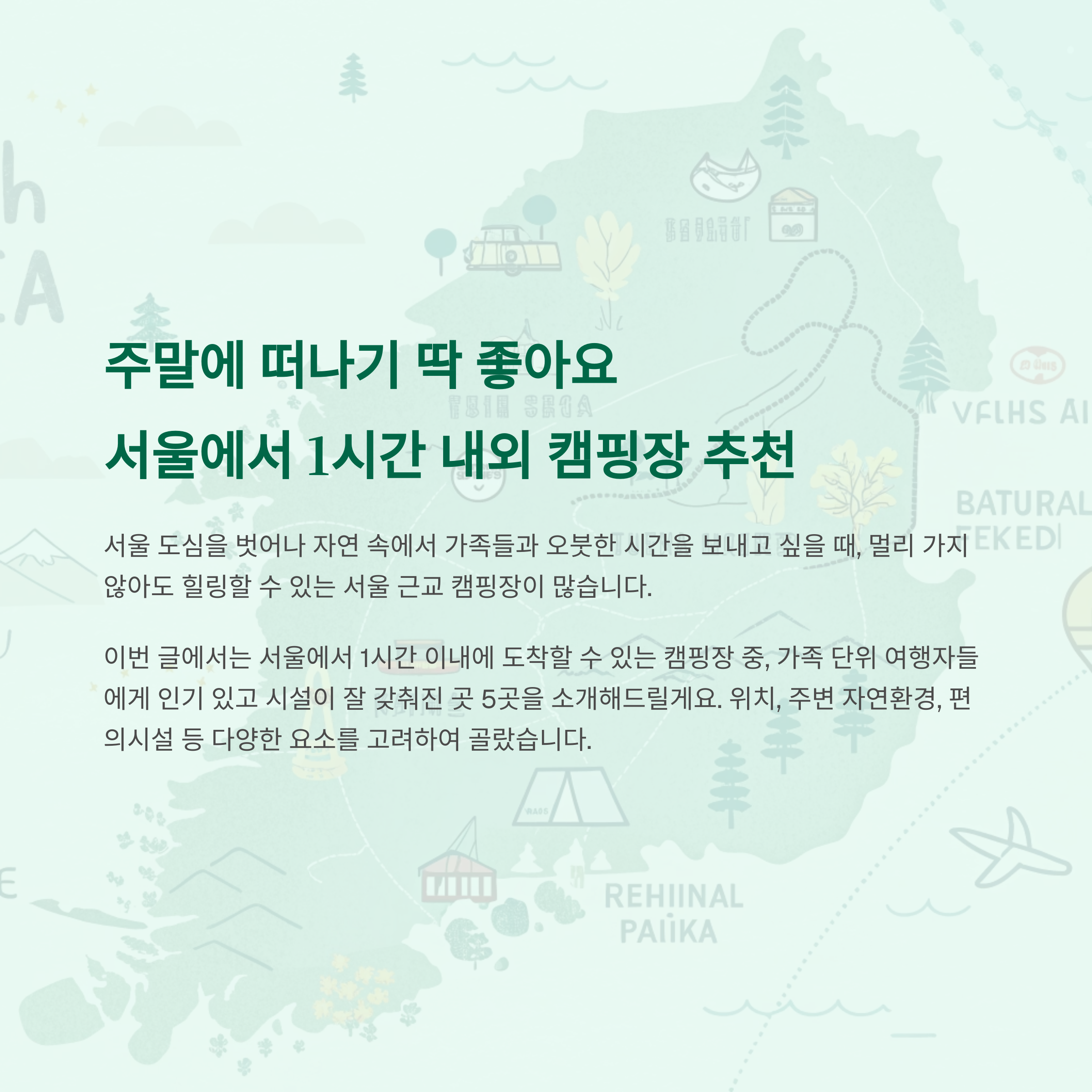 주말에 떠나기 딱 좋아요! 서울에서 1시간 내외 캠핑장 추천