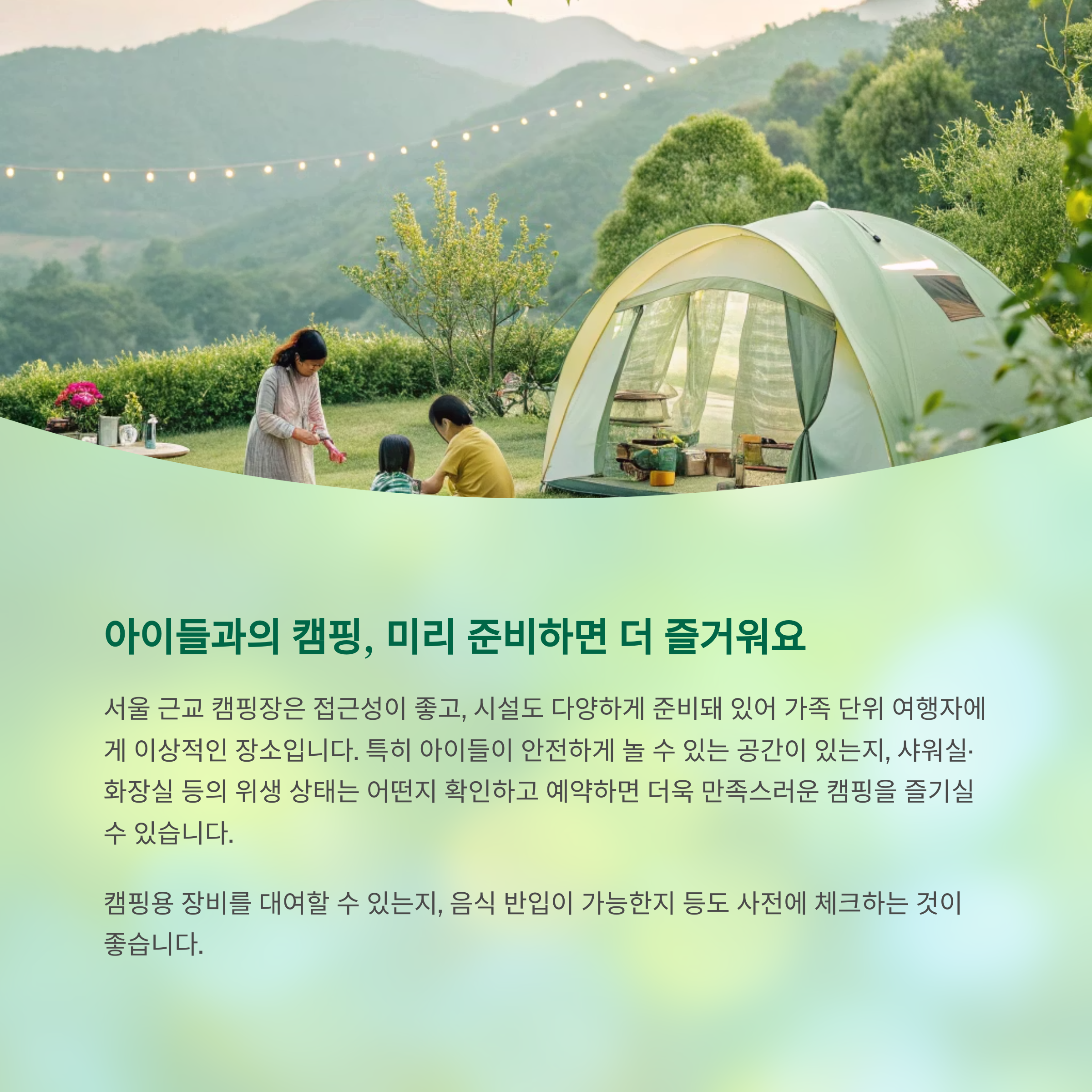 서울 근교 캠핑장은 접근성이 좋고, 시설도 다양하게 준비돼 있어