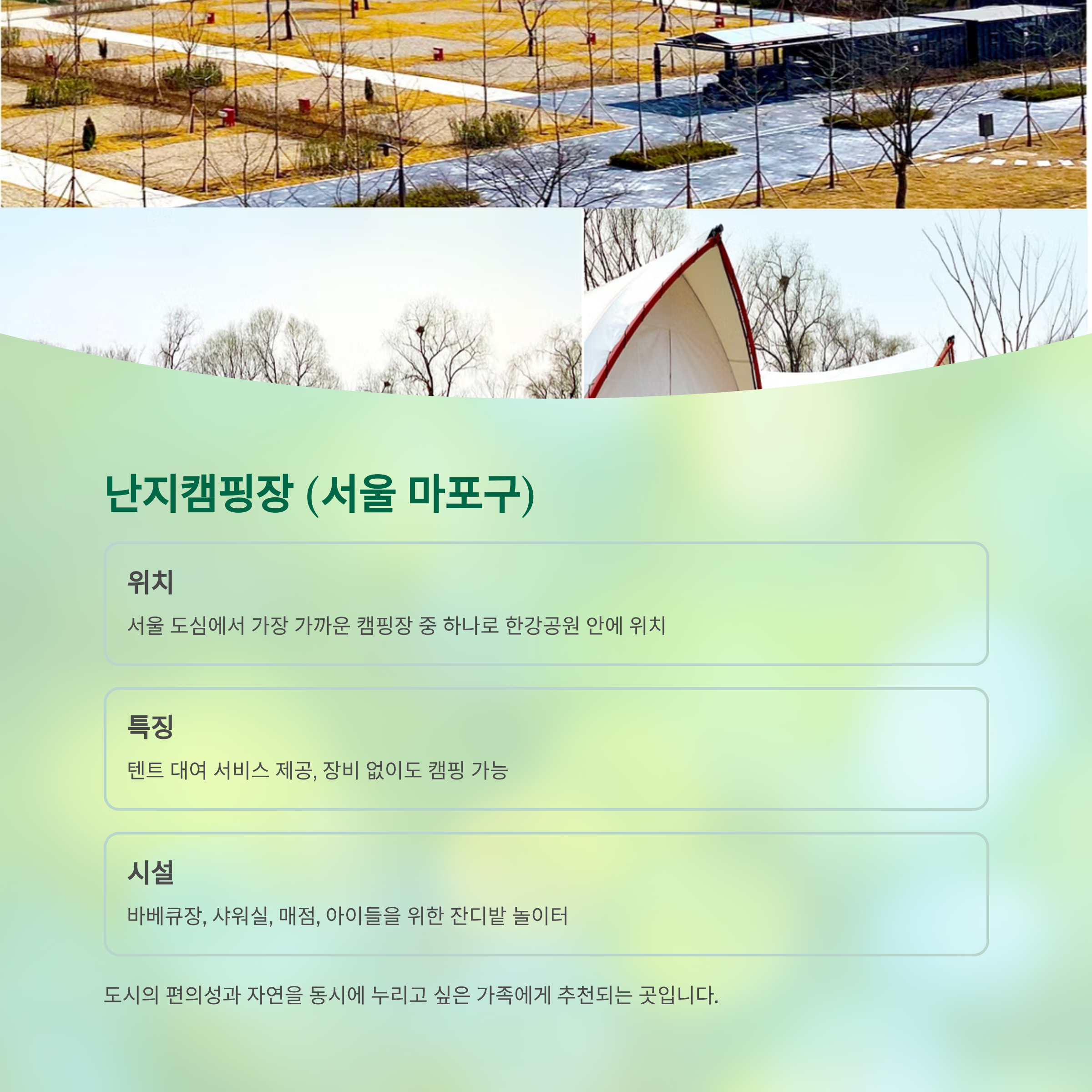 서울 도심에서 가장 가까운 캠핑장 중 하나로