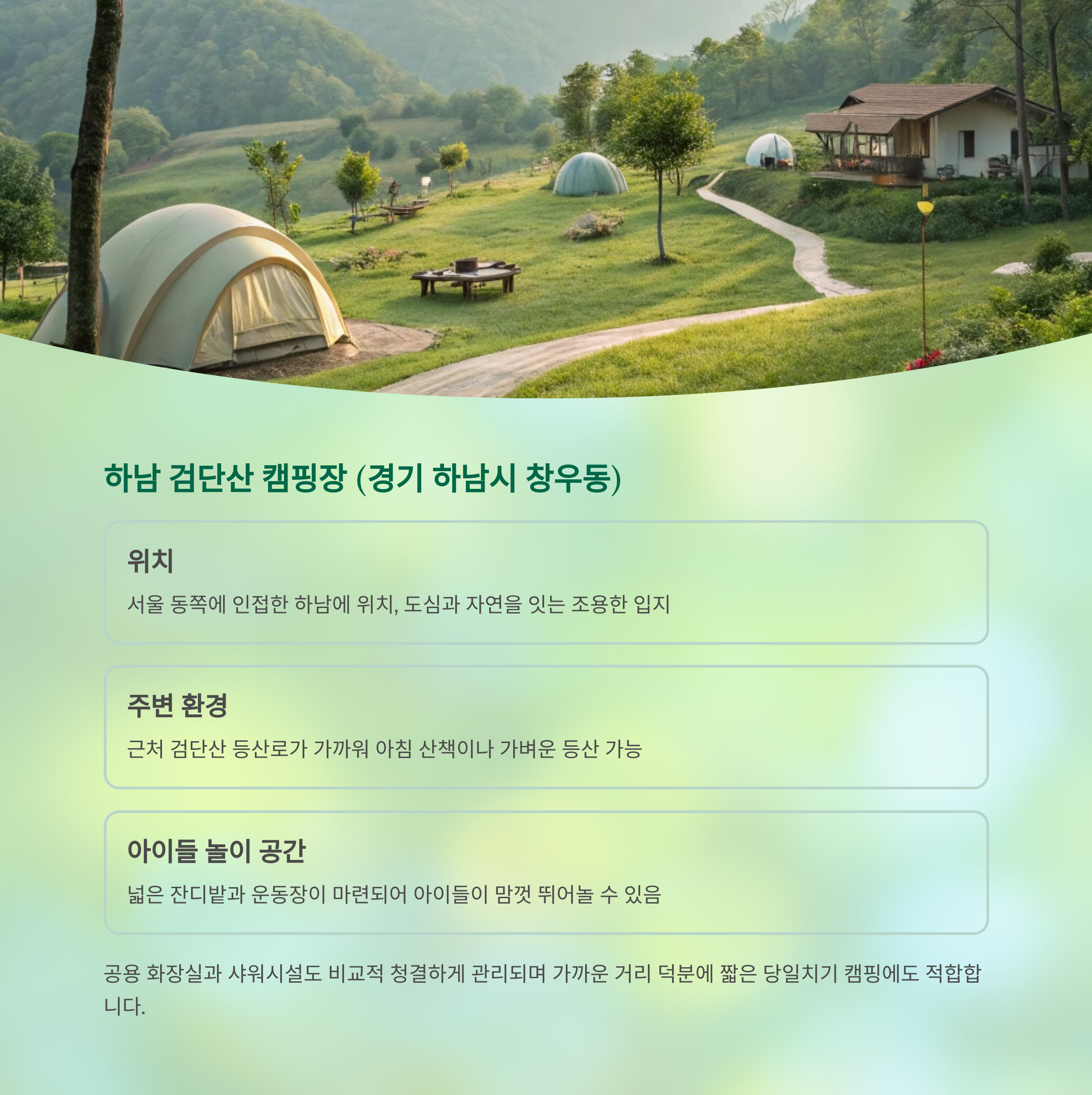 서울 동쪽에 인접한 하남에 위치한 이 캠핑장은