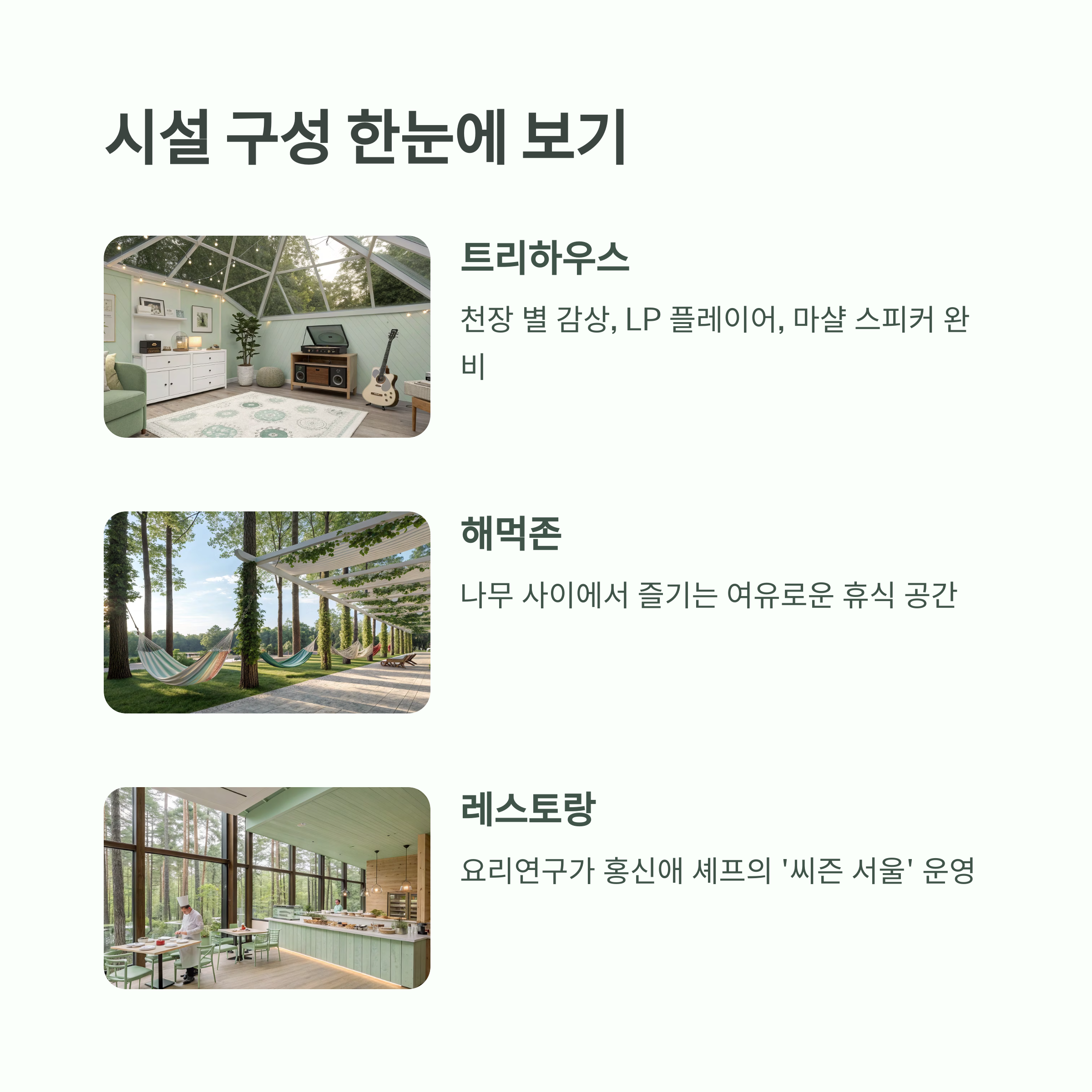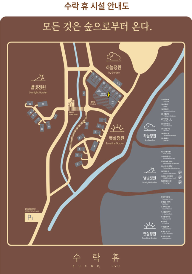 | 공용 공간 | 불멍존, 해먹존, 유아 체험장, 무장애 숲길 등 |