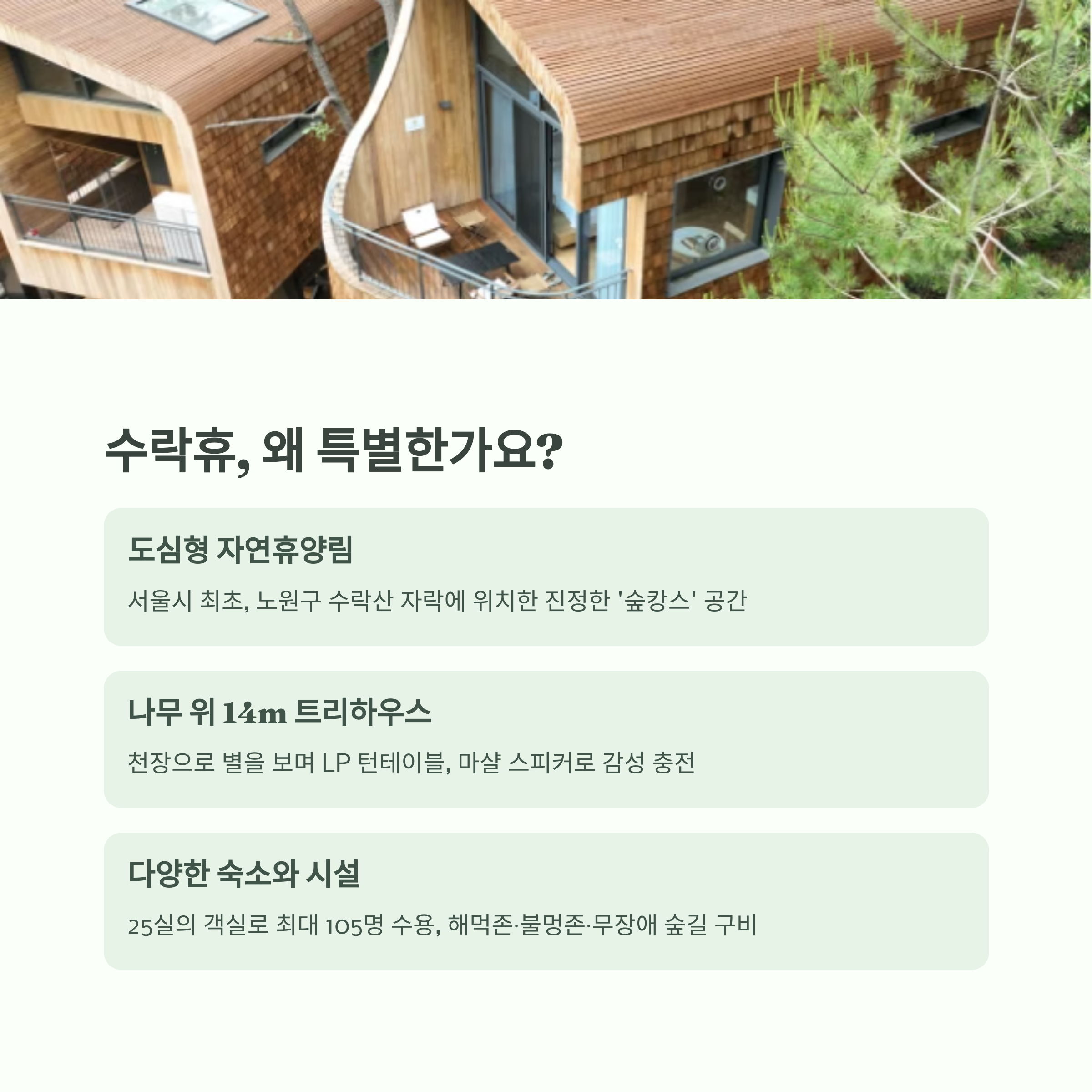 도심형 자연휴양림 ‘수락휴’, 왜 특별한가요?