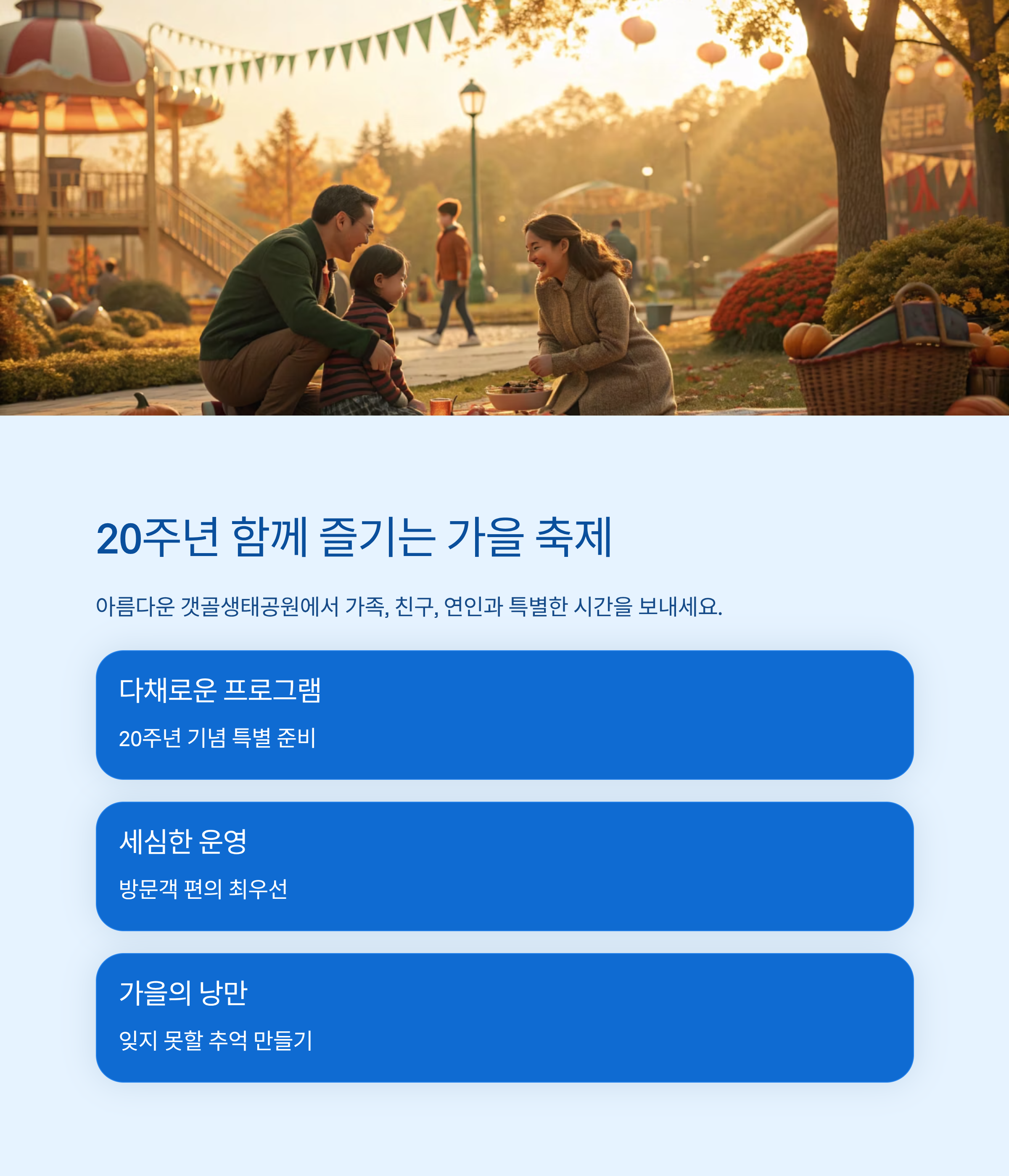 시흥을 대표하는 생태문화축제, 갯골축제가 올해로 20주년을 맞이합니다. ‘소금의 기억, 물의 춤’을 주제로 열리는 이번 축제는 갯골생태공원의 자연과 역사를 되새기며, 다양한 공연과 체험 프로그램으로 풍성하게 준비되었습니다. 9월 26일부터 28일까지, 가족과 함께 가을의 특별한 추억을 만들어 보세요.