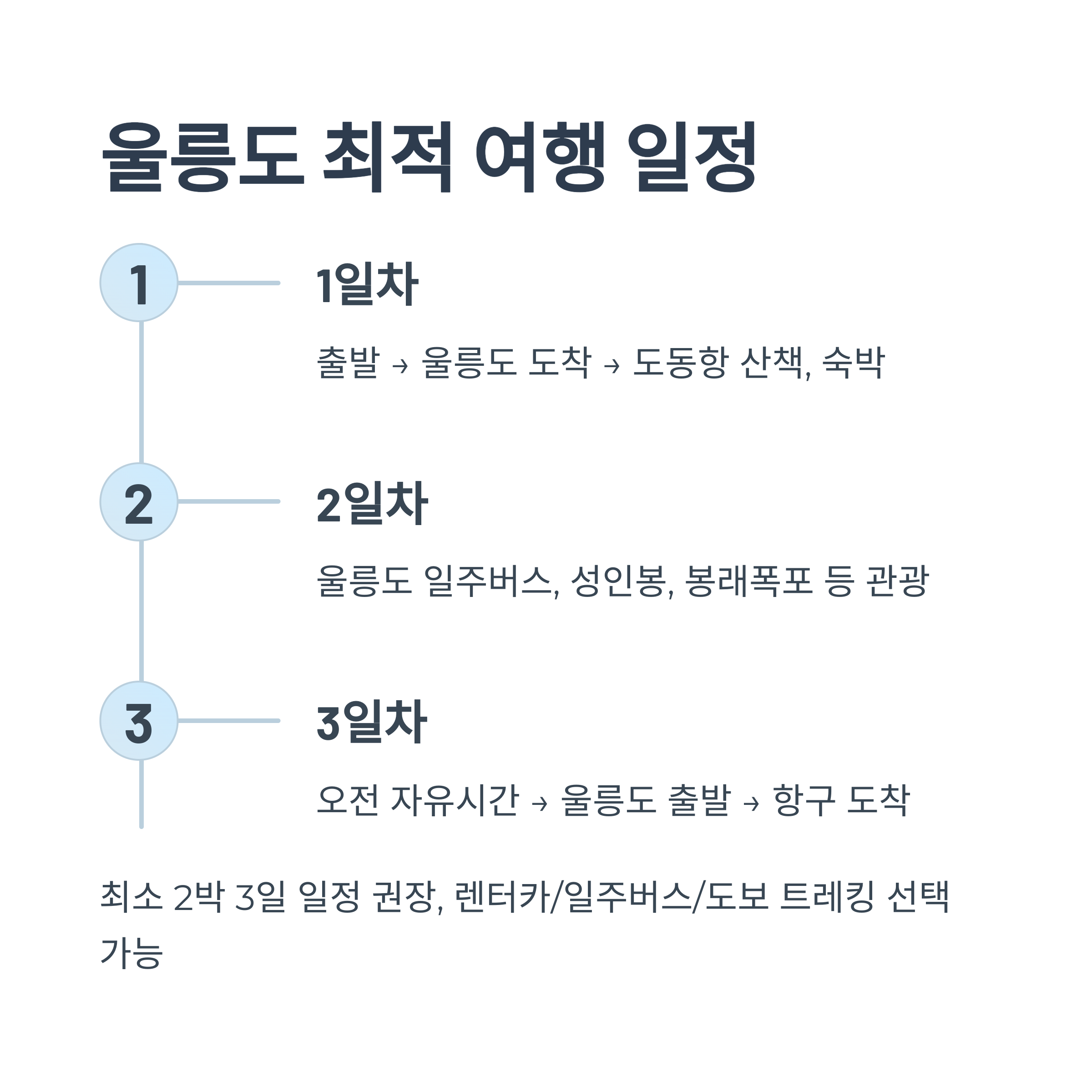 울릉도는 당일치기보다는 최소 2박 3일 일정이 적절합니다.