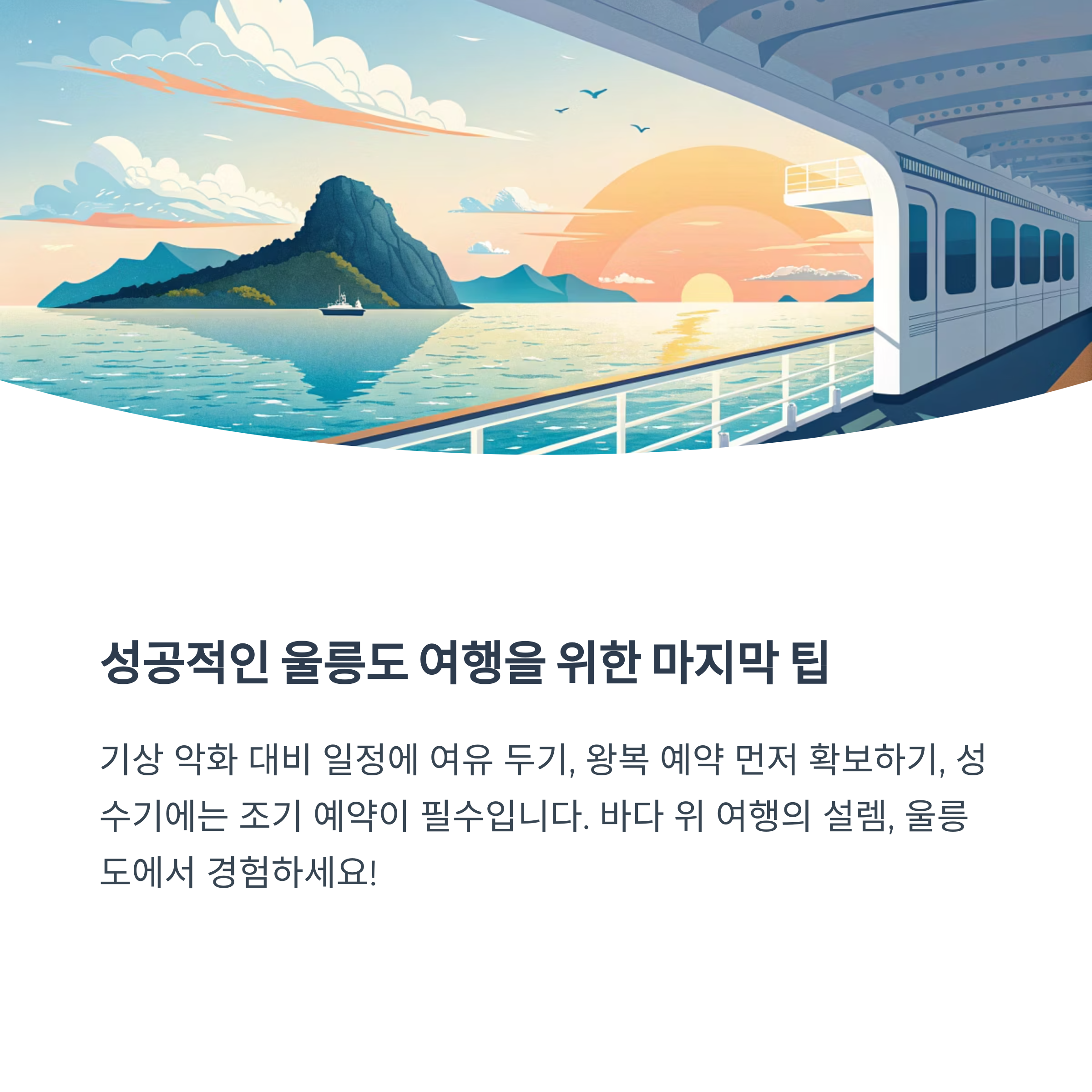 마지막으로, 울릉도 배편 예약을 성공적으로 하기 위해 기억할 점은 다음과 같습니다.