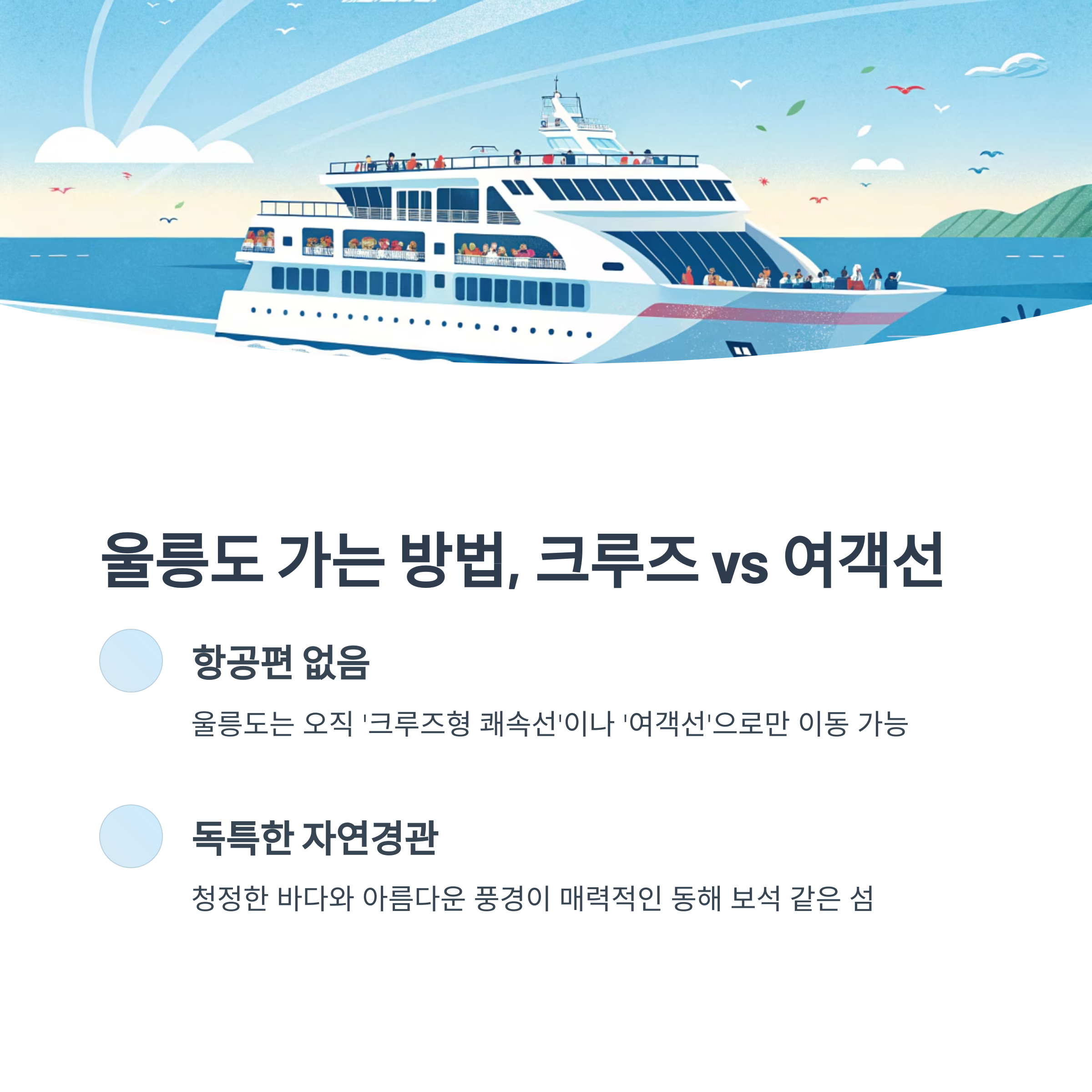울릉도 가는 배편과 크루즈, 어떻게 다르고 어떤 걸 선택해야 할까요?