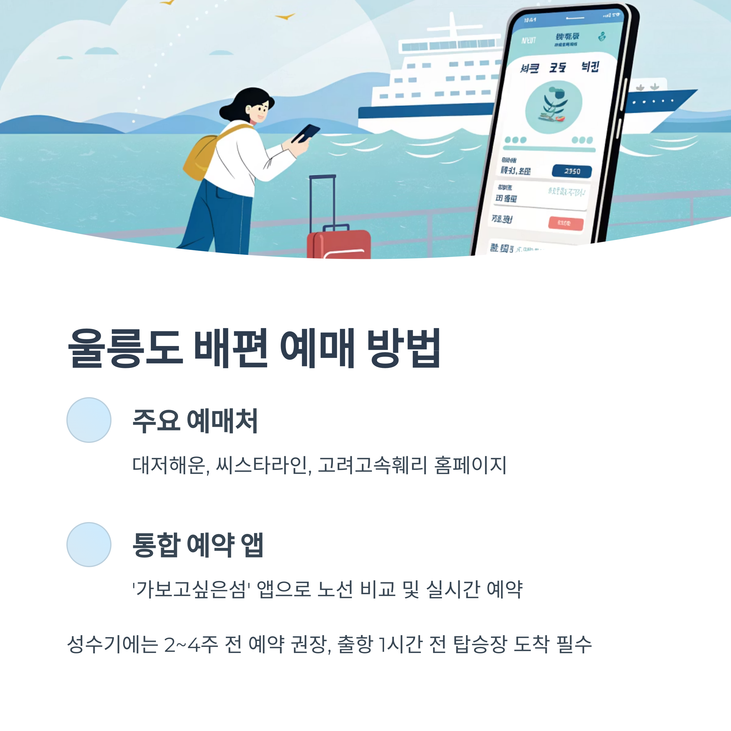 2025년 기준, 울릉도 배편은 대부분 인터넷 예매가 가능합니다.