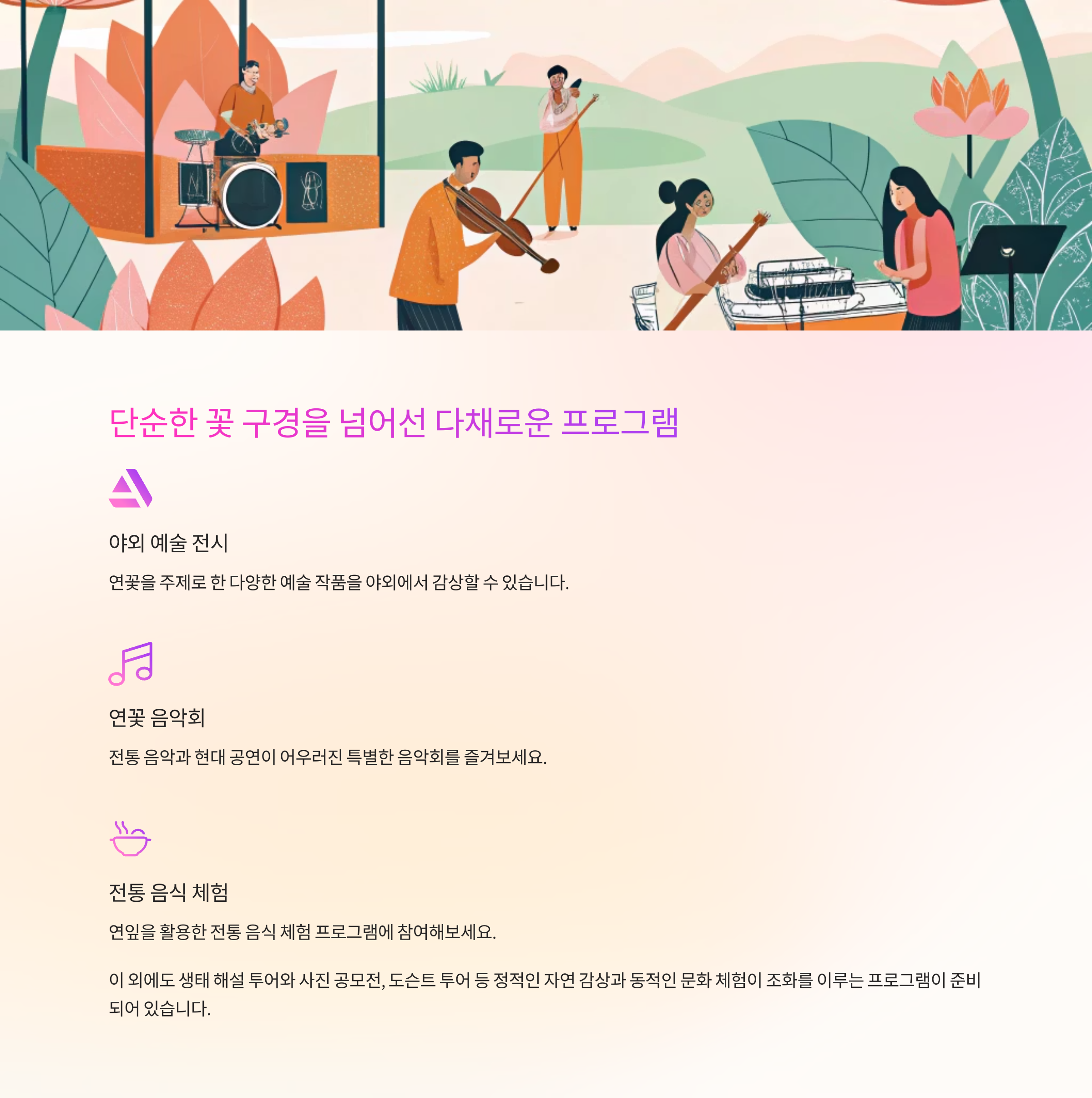 - 전통 음악과 현대 공연이 어우러진 연꽃 음악회
