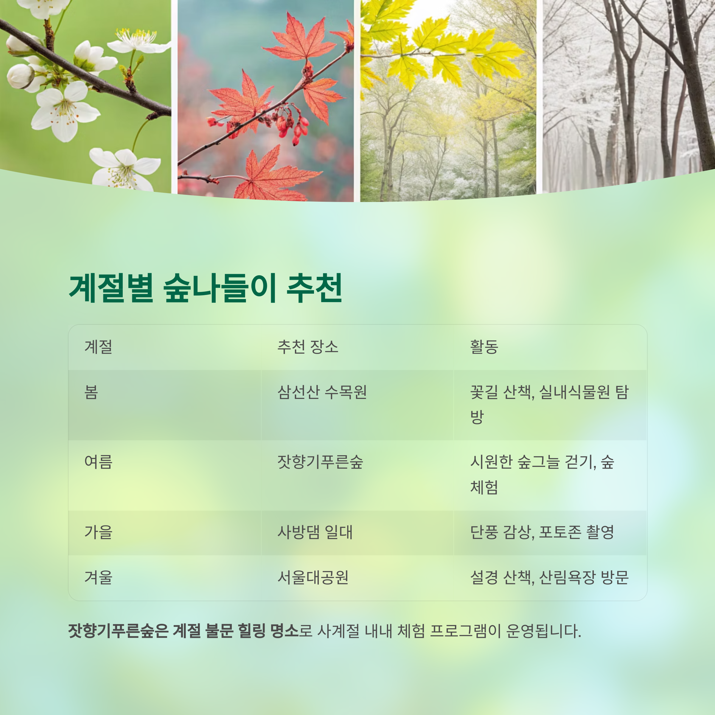 숲은 사계절 내내 우리에게 새로운 감동을 선사합니다