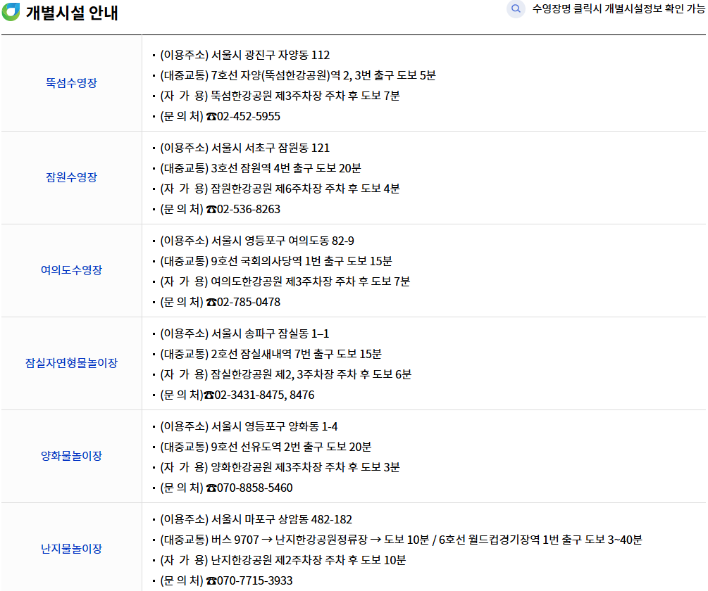 각 물놀이장의 특징을 한눈에 정리해드립니다.
