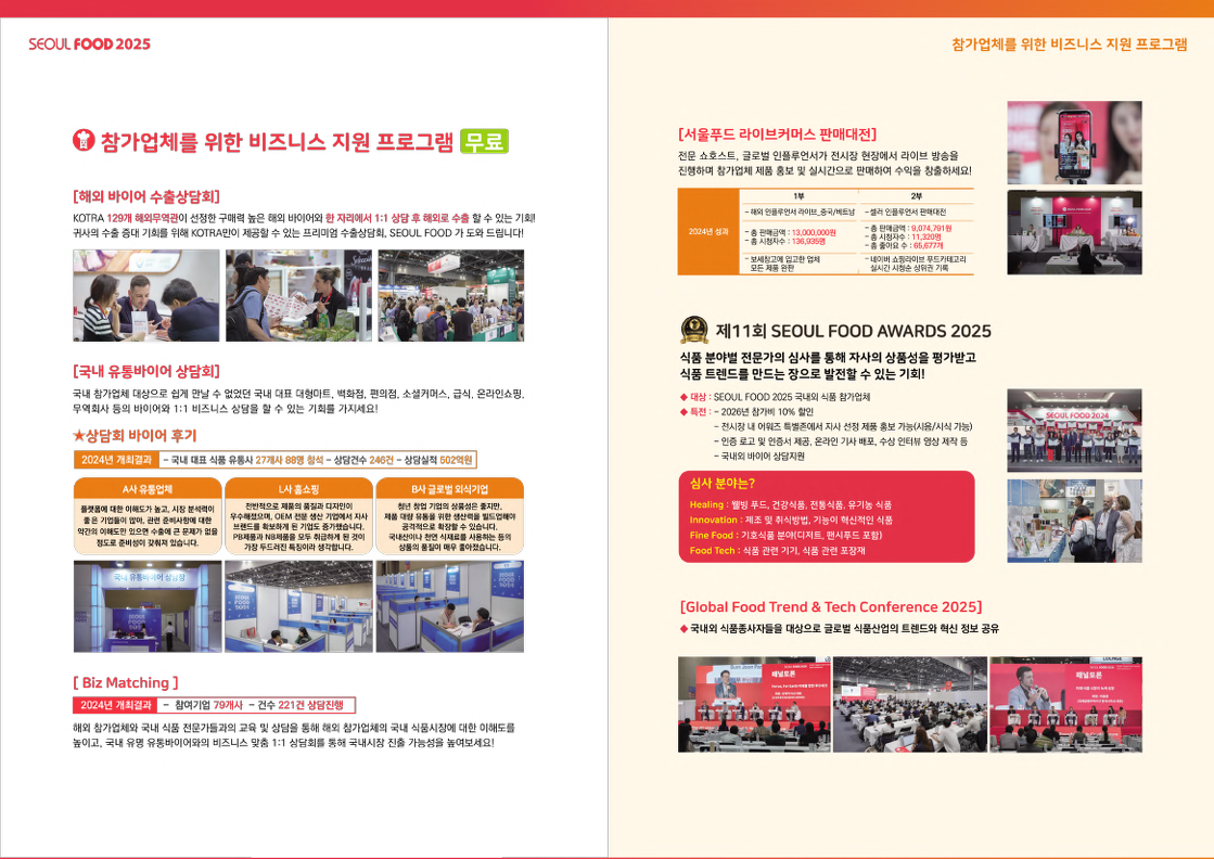 - 식품 바이어와 공급업체 간 1:1 비즈니스 미팅 지원