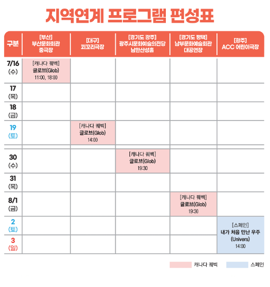 | 공연명 | 나라 | 장르 | 관람 연령 |