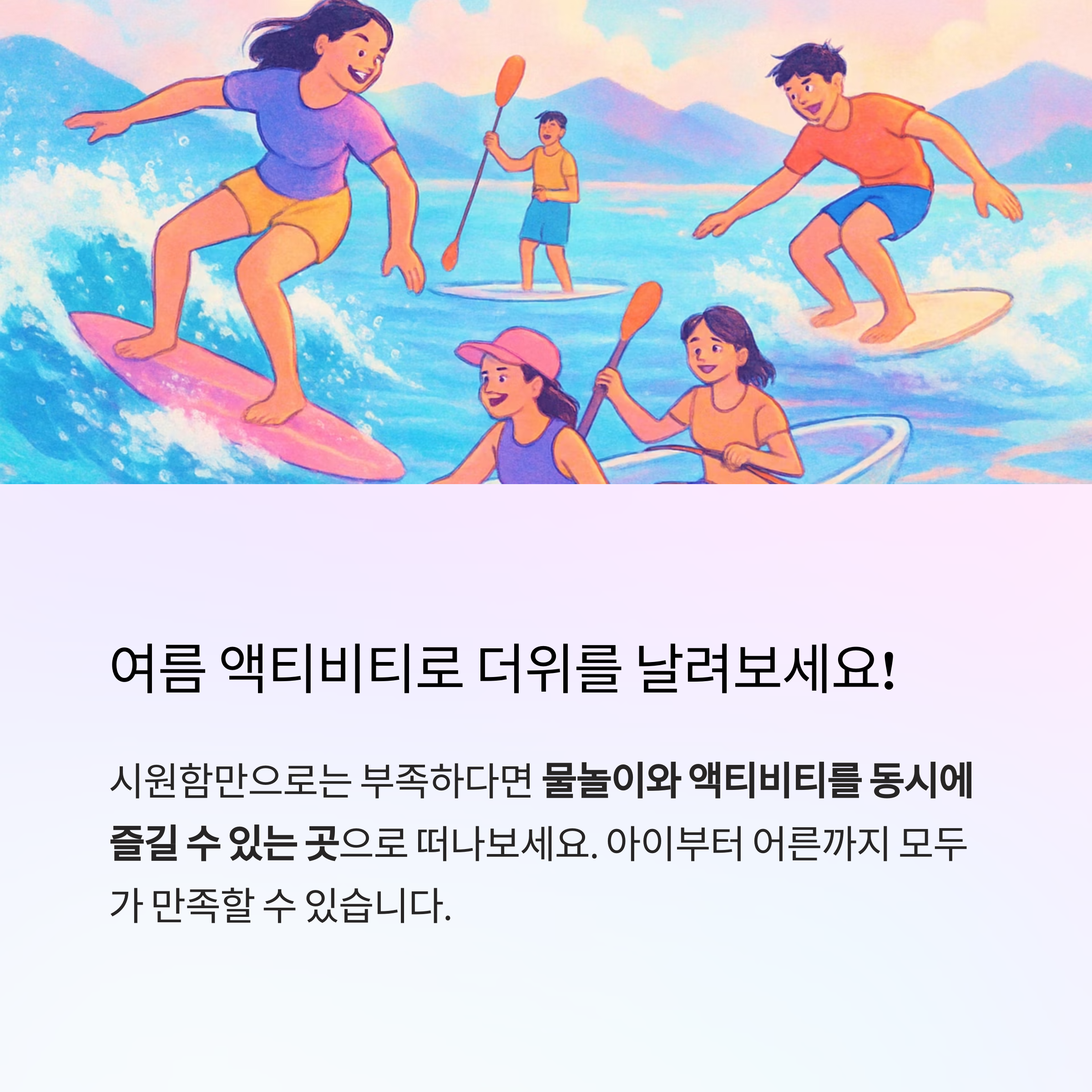 시원함만으로는 부족하다면 물놀이와 액티비티를 동시에 즐길 수 있는 곳으로 떠나보세요.
